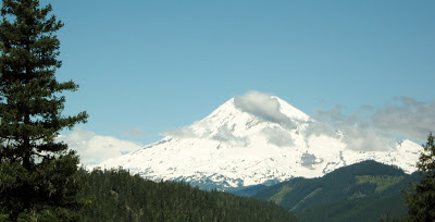 After a very pleasant few days relaxing to the max we caught the return ferry to Chelan, picked up the car, and drove part of the way home to the town of Wenatchee where we spent the night. Next day was gloriously sunny for our return to Vancouver. We drove back the scenic way - past Mt. Rainer National Park. As you can see, the mountain was out in all her glory on the clear day.